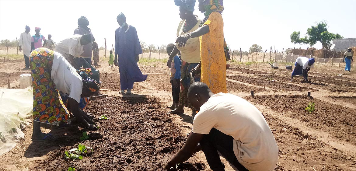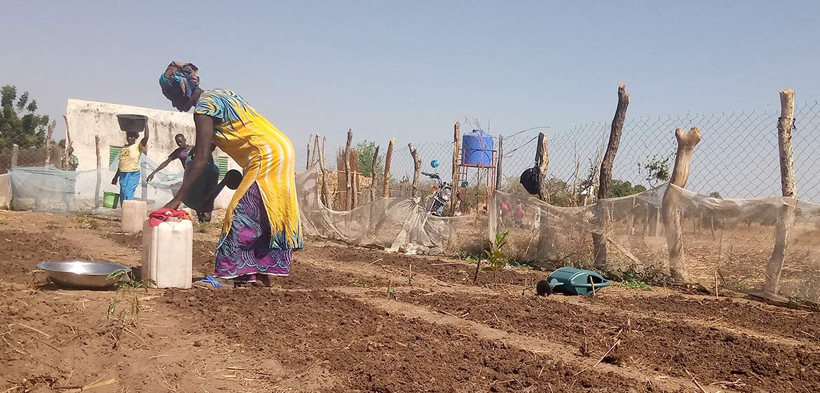 5 villages ont été sélectionnés, dont celui de Dimbo. La clôture a été entièrement refaite, et les planches de cultures organisées avec un groupement de femmes.